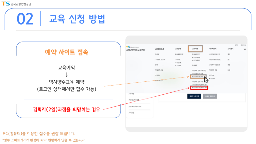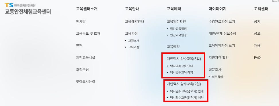 개인택시면허 양수교육은 인터넷 접수만 가능합니다. 아래 순서를 한 번만 따라 하면 됩니다.