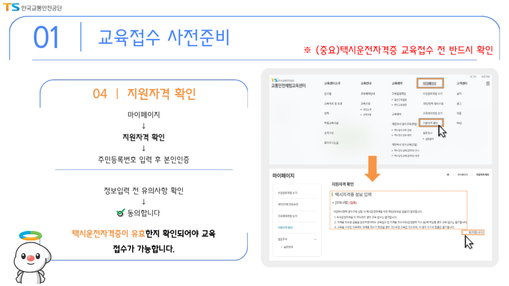 • 사전 준비 : 택시운전자격증 유효성 검증 필수