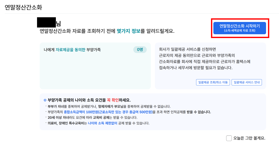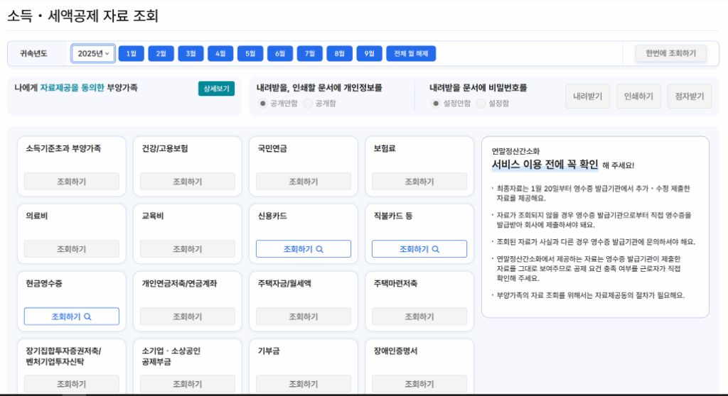 - 부양가족 자료제공 동의 여부 – 가족 자료가 보이지 않을 수 있음
