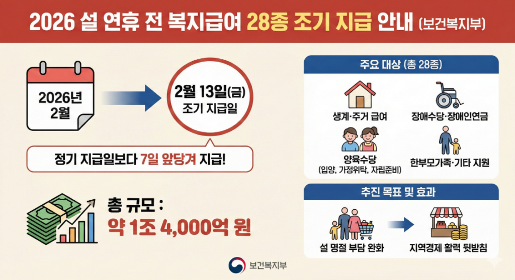 2026 설 연휴 복지급여 조기 지급 대상 일정 완벽 정리