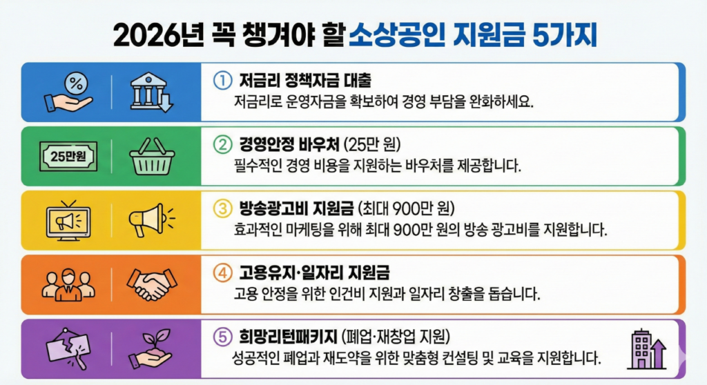 2026년 꼭 챙겨야 할 소상공인 지원금 5가지